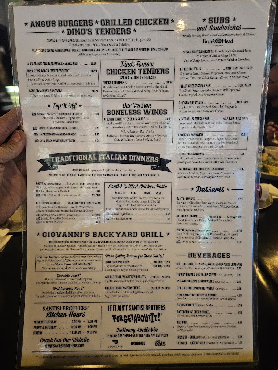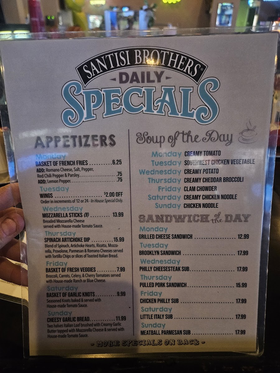 While some reviews mention the occasional mismatch between price and portion size, patrons like Allen Wilson and Chandler Wilson have expressed their satisfaction, having enjoyed their meals to the fullest, especially during busy events like NFL Sundays. Whether you’re looking for a casual bite during a game or a hearty meal any day of the week, Santisi Brothers is ready to serve you with a smile.
